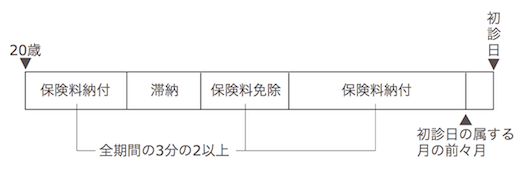 初診日の前日の時点で、初診日の属する月の前々月までに被保険者期間があり、かつ保険料納付が一定以上あること