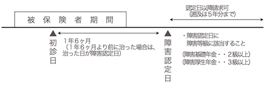 | 障害認定日 | (原則) 傷病についての初診日から起算して1年6ヶ月を経過した日 |