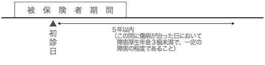| 障害手当金 | (障害厚生年金3級不該当) 初診日から5年以内 | |